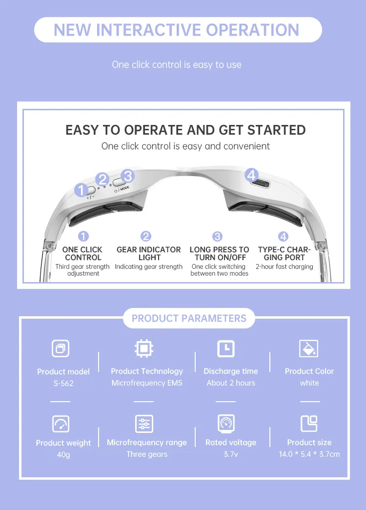 | Package List | 1 * EMS Red Light Eye Glass 1 * Manual 1 * USB Cable |
