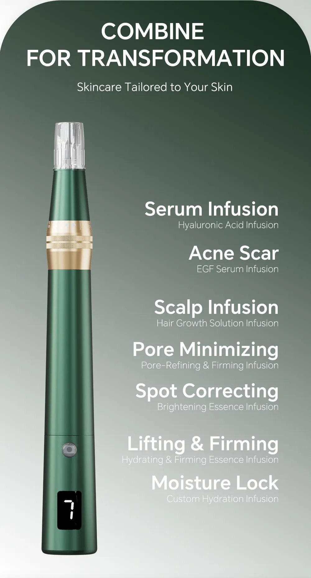OstarBeauty micro dermapen OB-DG 07 works through a method of puncturing the skin through a spring-loaded automated function, the dermapen OB-DG 07 uses microneedles to move up and down across the skin, puncturing small holes as it moves. The mechanism inside the dermapen causes the stimulation of healthy collagen and the small punctures in the skin to allow for nutrients to be absorbed into the deep layers of the skin. The dermapen OB-DG 07 process is fast and therefore doesn’t damage the dermal layers of the skin. it's the best home use beauty microneedle pen with much Safety, Hygiene and Customisation.